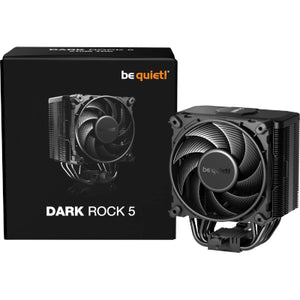 يحتوي Dark Rock 5 على 6 أنابيب حرارية عالية الأداء من النحاس وطلاء أسود خاص بجزيئات سيراميكية. يتميز مروحة Silent Wings PWM بمحامل ديناميكية سائلة متينة، ومحرك 6 أقطاب هادئ، وشفرات مروحة محسّنة لتدفق الهواء. تغطي شبكة مغناطيسية أنابيب الحرارة. يمكن تركيب مروحة ثانية اختيارية عند المخرج لزيادة ضغط الهواء. بفضل لوحة تبريد مطلية بالنيكل، يتوافق Dark Rock 5 مع معجون حراري معدني سائل مثل DC2 Pro. تتيح خصائص التوصيل الحراري المعدني السائل مع Dark Rock 5 أداءً أعلى لوحدات المعالجة المركزية عالية الأداء.